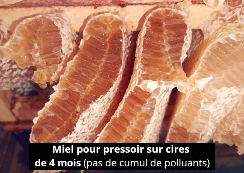 3: Nous refusons de garder les cires dans les hausses plus de 4 mois dans les hausses et 14 mois maximum dans les corps, afin d'éviter de cumuler des polluants sur des cires allants de 2 a 5 ans parfois plus, utilisé dans l'apiculture traditionnelle et au détriment identique de la production mentionné ci-dessus..